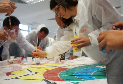 Bigger Picture – Teams collaborate to paint an enormous interconnected multi-canvas artwork that reflects company’s Vision or Goals.